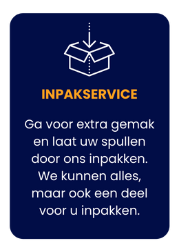Professioneel Inpakken Een ordelijke verpakking is essentieel voor een geslaagde verhuizing. Onze experts zorgen ervoor dat al uw bezittingen veilig en zorgvuldig worden ingepakt met hoogwaardige materialen en technieken om ze tijdens het transport te beschermen.