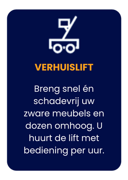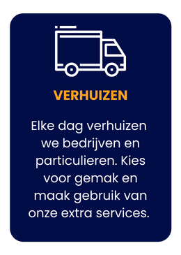 Ons ervaren team maakt gebruik van eigen vrachtwagens, verhuisliften en verhuismaterialen om uw spullen snel, efficient en schadevrij te verhuizen.